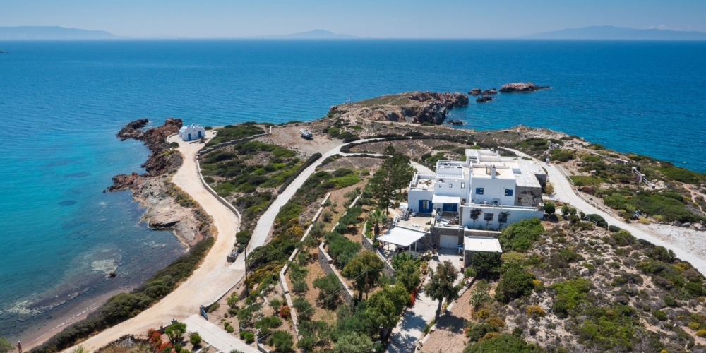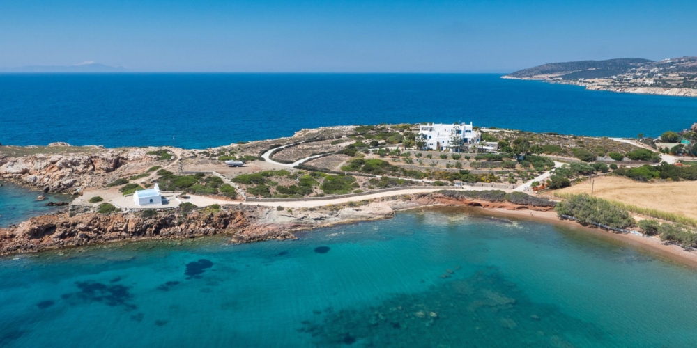 Set in one of the most idyllic areas of the Island of Paros, in Dryos location known as "Pyrgos" or "Pyrgaki", the coastal 5-bedroom elite Villa-Estate complete with exclusive beachfront access, gym, tennis & basketball courts, pool tables, and table tennis, and church for weddings on a 20-acre (20000sqm) private land